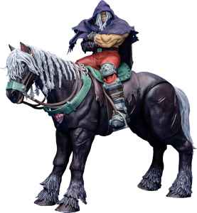 布製ケープに加え、ロシナンテが付属し、キャラクターの存在感をさらに引き立てるディスプレイが可能。